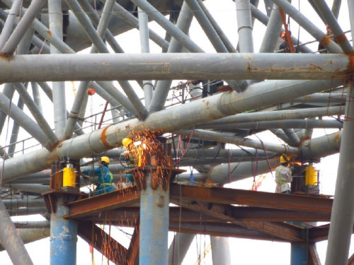 13283262888鋼結(jié)構(gòu)用螺旋鋼管廠家(雙面埋弧螺旋焊管)是以帶鋼卷板為原材料,經(jīng)常溫?cái)D壓成型,以自動(dòng)雙絲雙面埋弧焊工藝焊接而成的螺旋縫鋼管.原材料即帶鋼卷,焊絲,焊劑。在投入前都要經(jīng)過嚴(yán)格的理化檢驗(yàn)。帶鋼頭尾對(duì)接,采用單絲或雙絲埋弧焊接,在卷成鋼管后采用自動(dòng)埋弧焊補(bǔ)焊。成型前,帶鋼經(jīng)過矯平、剪邊、刨邊,表面清理輸送和予彎邊處理。鋼結(jié)構(gòu)用螺旋鋼管采用電接點(diǎn)壓力表控制輸送機(jī)兩邊壓下油缸的壓力,確保了帶鋼的平穩(wěn)輸送。采用外控或內(nèi)控輥式成型。每批鋼管頭三根要進(jìn)行嚴(yán)格的首檢制度,檢查焊縫的力學(xué)性能,化學(xué)成份,溶合狀況,鋼管表面質(zhì)量以及經(jīng)過無損探傷檢驗(yàn),確保制管工藝合格后,才能正式投入生產(chǎn)。采用焊縫間隙控制裝置來保證焊縫間隙滿足焊接要求,管徑,錯(cuò)邊量和焊縫間隙都得到嚴(yán)格的控制。鋼結(jié)構(gòu)用螺旋鋼管內(nèi)焊和外焊均采用美國(guó)林肯電焊機(jī)進(jìn)行單絲或雙絲埋弧焊接,從而獲得穩(wěn)定的焊接規(guī)范。采用空氣等離子切割機(jī)將鋼管切成單根。焊完的焊縫均經(jīng)過在線連續(xù)超聲波自動(dòng)傷儀檢查,保證了100%的螺旋焊縫的無損檢測(cè)覆蓋率。若有缺陷,自動(dòng)報(bào)警并噴涂標(biāo)記,生產(chǎn)工人依此隨時(shí)調(diào)整工藝參數(shù),及時(shí)消除缺陷。切成單根鋼管后,每批鋼管頭三根要進(jìn)行嚴(yán)格的首檢制度,檢查焊縫的化學(xué)成份,溶合狀況,鋼管表面質(zhì)量以及經(jīng)過無損探傷檢驗(yàn),確保制管工藝合格。焊縫上有連續(xù)聲波探傷標(biāo)記的部位,經(jīng)過手動(dòng)超聲波和X射線復(fù)查,如確有缺陷,經(jīng)過修補(bǔ)后,再次經(jīng)過無損檢驗(yàn),直到確認(rèn)缺陷已經(jīng)消除。帶鋼對(duì)焊焊縫及與螺旋焊縫相交的丁型接頭的所在管,全部經(jīng)過X射線電視或拍片檢查。